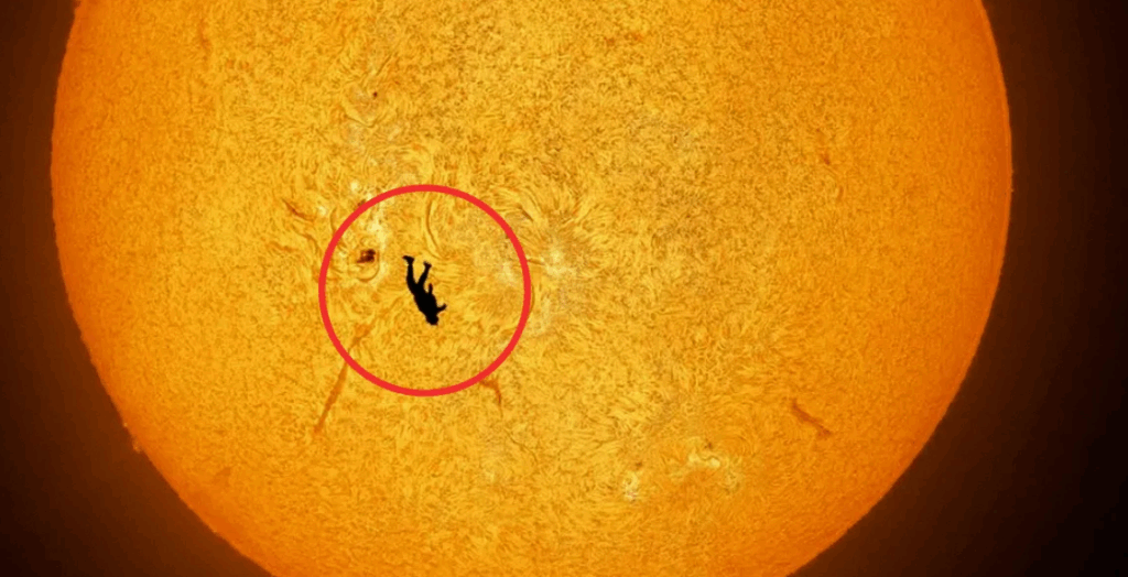 Arizona အခြေစိုက် နက္ခတ်ဓာတ်ပုံဆရာ Andrew McCarthy က နေလုံးကြီးရဲ့ မျက်နှာပြင်ရှေ့တည့်တည့်မှာ Skydiver တစ်ယောက် ဖြတ်ကျနေသလို ထင်ရတဲ့ ပုံတစ်ပုံကို မျှဝေခဲ့ပါတယ်။